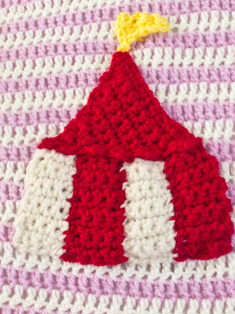 The original design was similar but had the Big Top sat underneath where the bunting meets the top of the blanket, and an elephant in the bottom right hand corner. Try as I might, I couldn't find a pattern I liked for the elephant and as for the Big Top, I couldn't even find one at all.